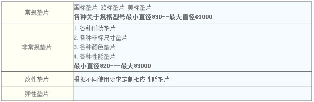 【 特 征 】 聚四氟乙烯墊片是選用縣浮聚合四氟乙烯與其它塑料相比具有耐化學(xué)腐蝕與耐溫優(yōu)異的特點(diǎn)。它已被廣泛地應(yīng)用作為密封材料。 【 規(guī) 格 】